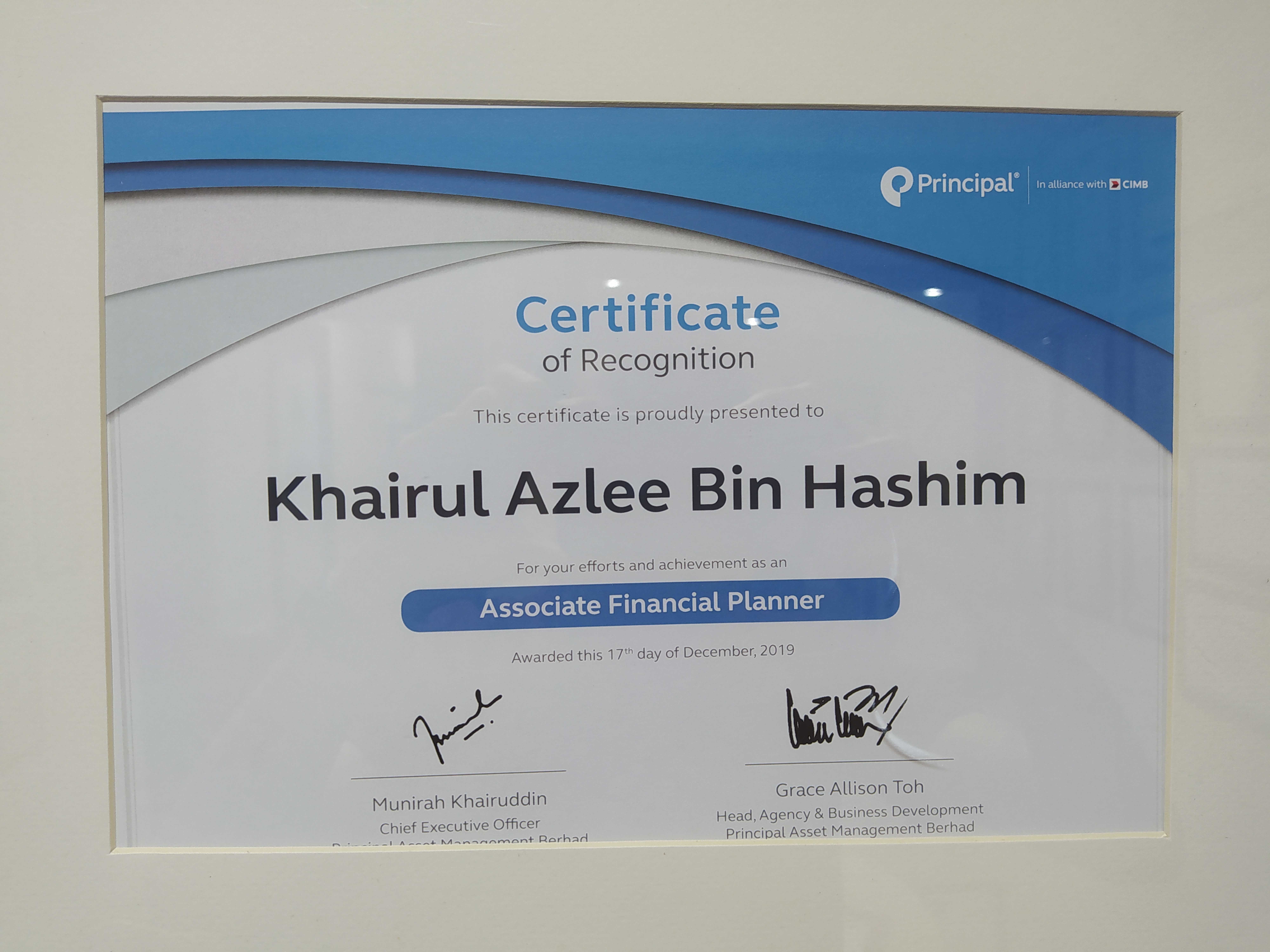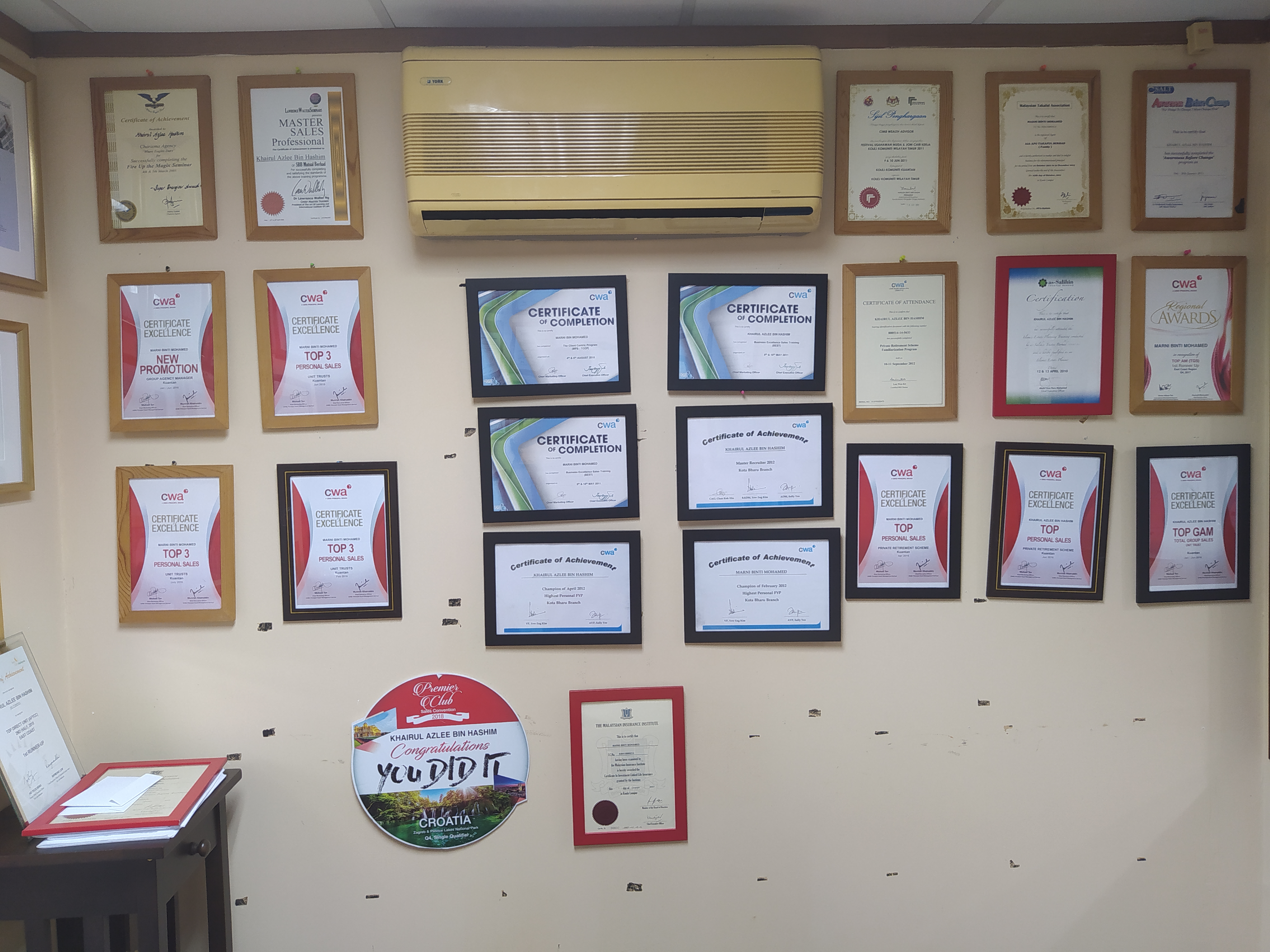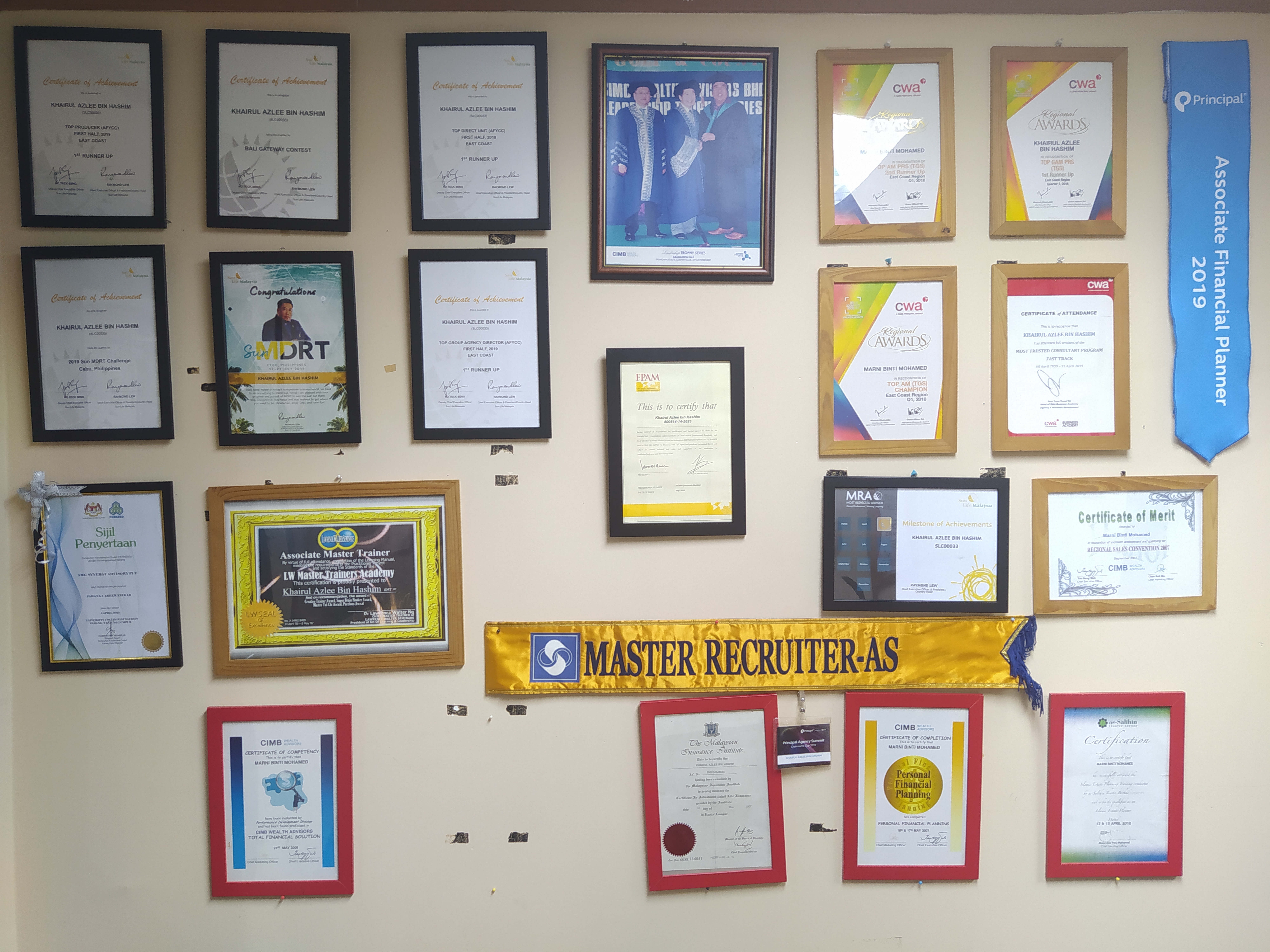 Sijil-sijil yang telah berjaya diperolehi oleh GAM Khairul Azlee dan AM Marni Mohamed.