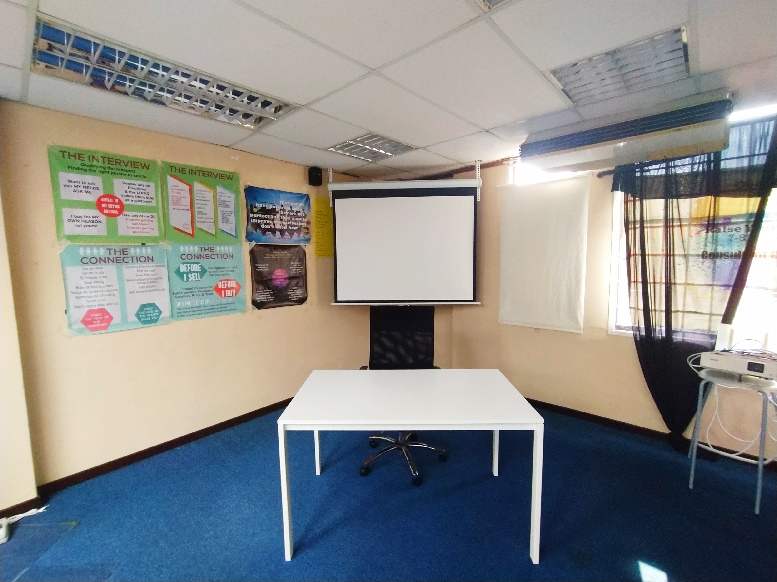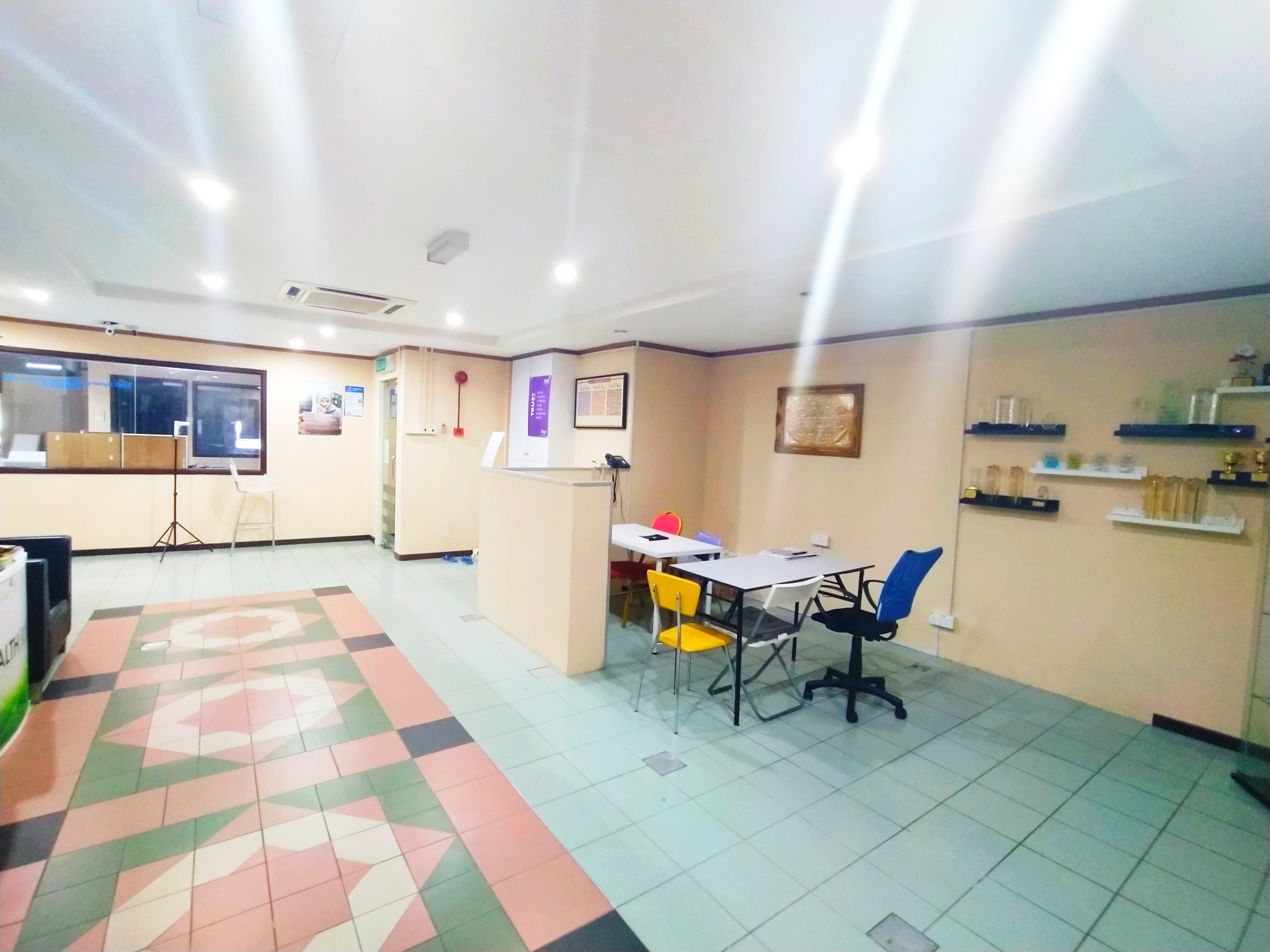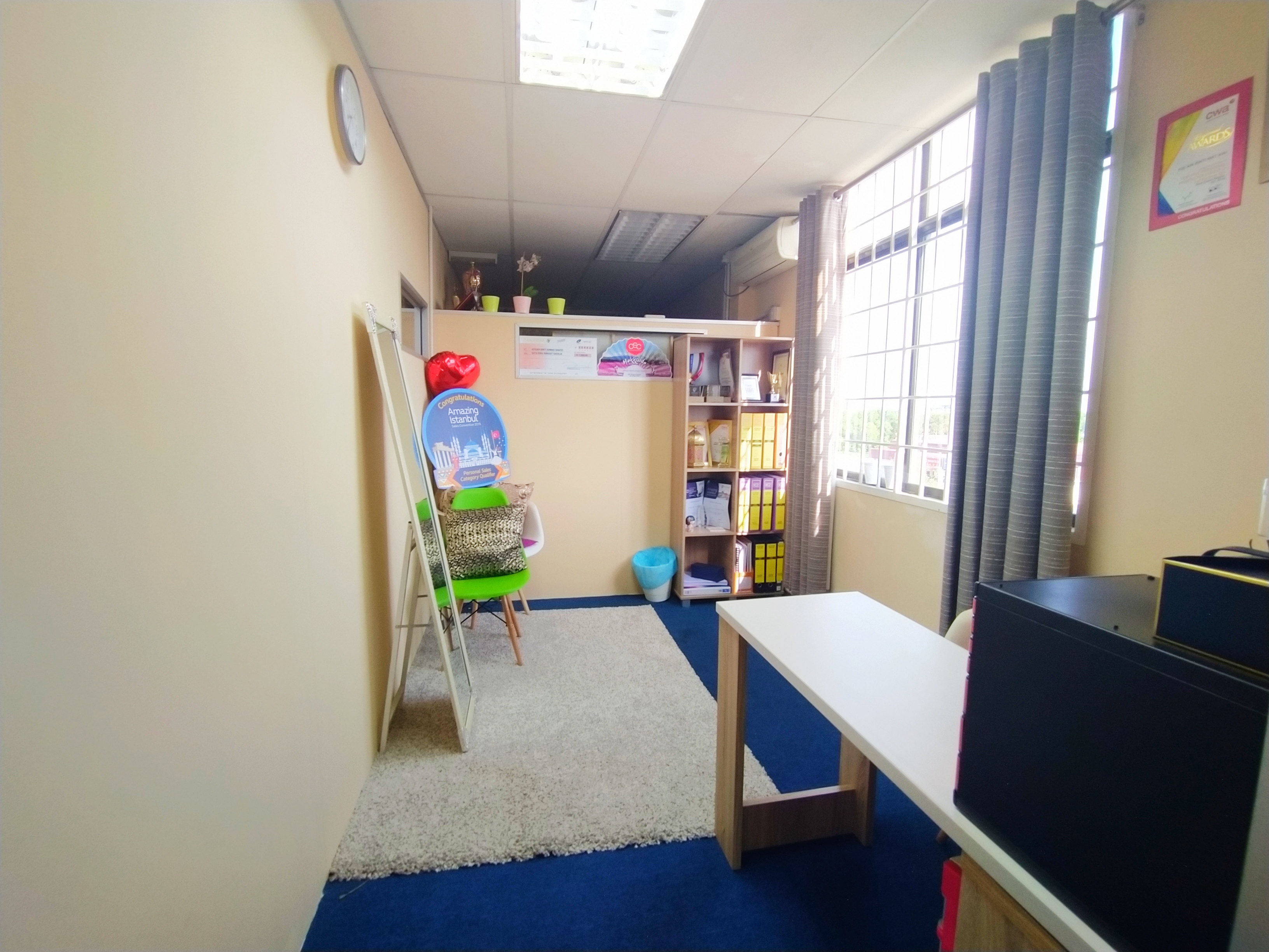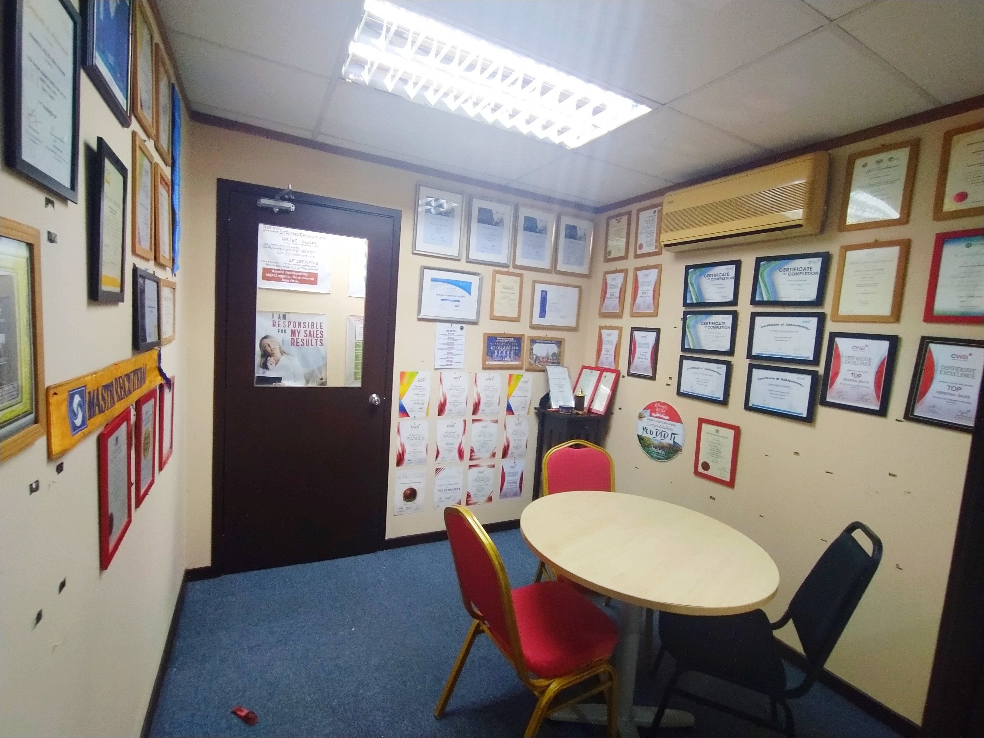 Bahagian-bahagian yang terdapat di dalam bangunan dan suasana di dalam pejabat.